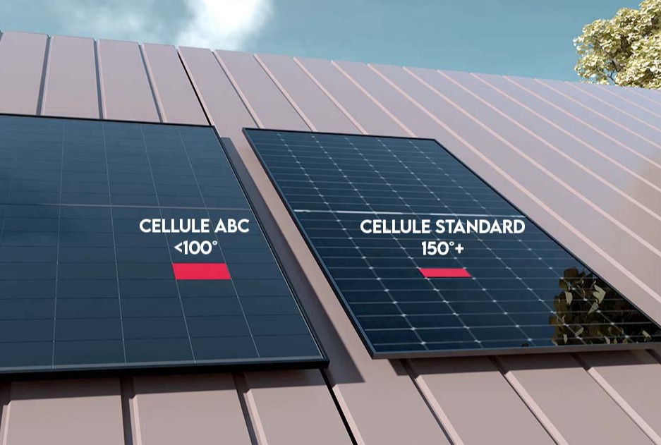 La cellule solaire ABC (All Back Contact), place tous ses contacts à l’arrière, laissant la face avant entièrement exposée au soleil. Plus de rendement (≈23-24 %), un design noir uniforme très esthétique et une durabilité accrue grâce à la suppression de l’argent dans la métallisation. Cette innovation réduit les risques de points chauds, améliore la performance en climat chaud et prolonge la durée de vie des modules. Produite à grande échelle, l’ABC combine performance, fiabilité et esthétisme.